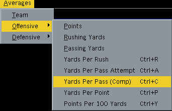 All of these are averaged on the number of games you use in your formula (as indicated in the title). If you click on a column the program displays all teams rank in that offensive stat.