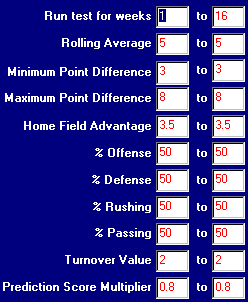 You can then change the numbers to a range of values to be tested. (Note: The defense and passing boxes are not editable as they are equal to (100 - offense) and (100 - rushing) respectively).